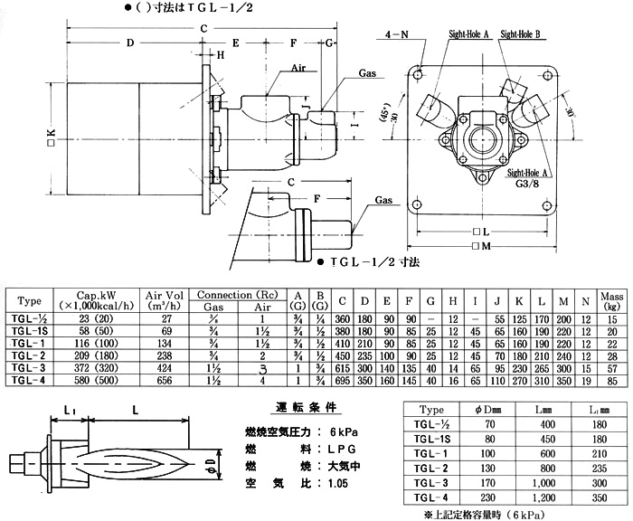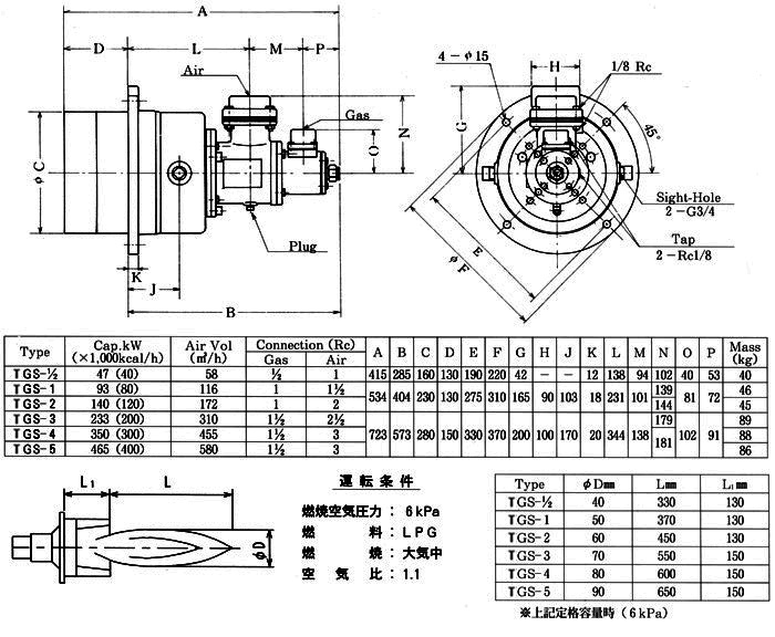 A simple operation of lever can convert two kinds of plain flame and straight flame. Suitable for heating fumace and melting fumace.