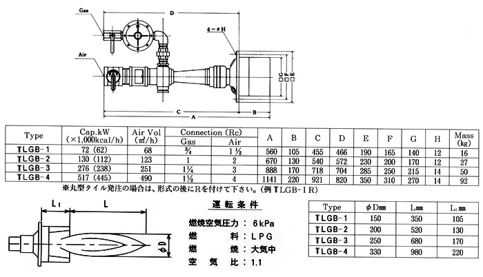 Perfact combustion on the burner tile surface allows proximate heating. Heat, emitted from the burner tile surface, has a high emissivity, so the heat is used for heating materials.