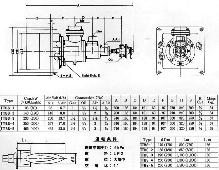 This is a high-speed burner for the combustion with combination of gas and oil.