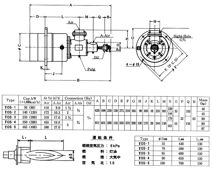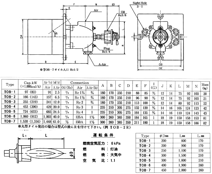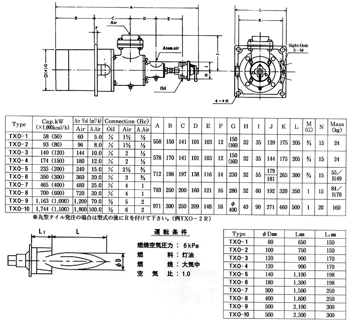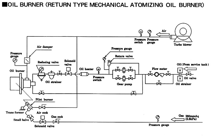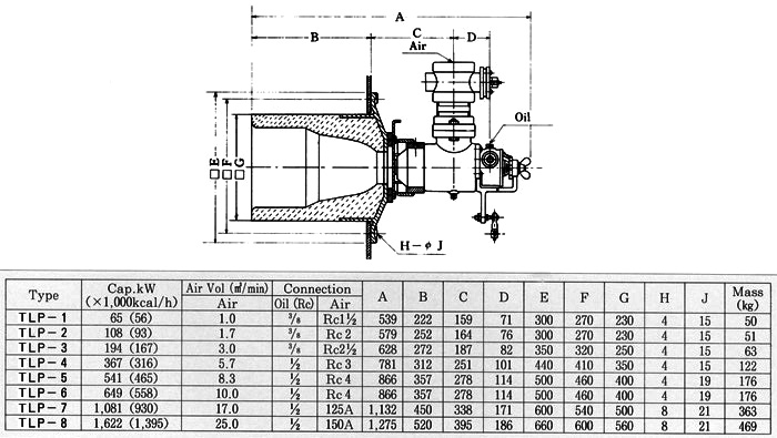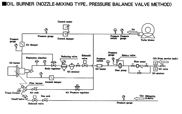 This is a high-speed oil burner which is superior in stirring in the furnace and uniformity of temperature distirbution in the furnace.
